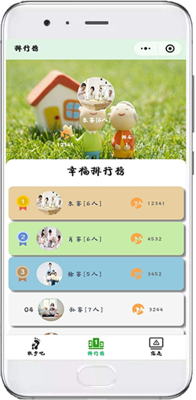 为了使APP达到更好的推广效果,我们将APP部分功能嵌入微信小程序,利用孝心指数进行推广,传递社会正能量。该指数是通过子女和父母待在一起的时间作为主要权重,那些排名低的老人家庭也是我们重点关注的对象,系统会将他们的情况自动上传至web监管平台,管理员会派遣义工前往老人家中慰问老人。