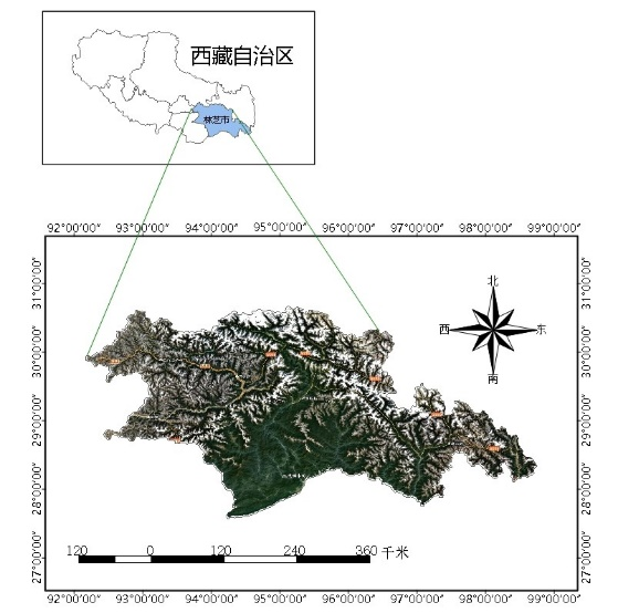 藏东南是西藏乃至全国原始森林保存最为完整地区之一,其森林资源更是对地区乃至全球碳收支的平衡都具有重要的调控作用。而位于青藏高原东南部的林芝市森林覆盖率高达46.09%,占据西藏自治区森林总面积的80%。因此,研究林芝市的森林生态系统植被碳利用效率对于理解森林生态系统固碳能力、认识碳循环机理、保护生态环境、制定气候变化策略和构建青藏高原国家生态安全屏障区均具有重要意义。