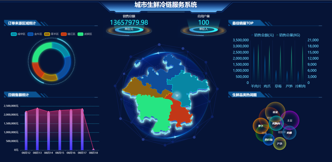 因此,我团队以成都市主城区为例,开发了“城市生鲜冷链服务系统”,希望能为政府部门和相关行业提供帮助。