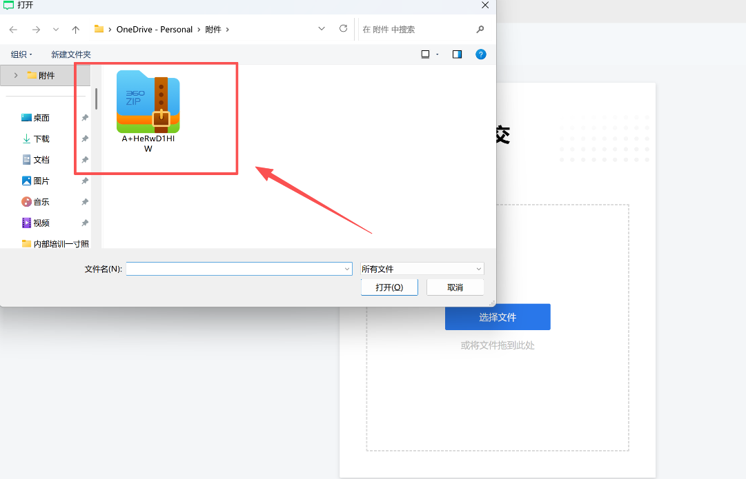 2. 选择打开待提交的作品文件压缩