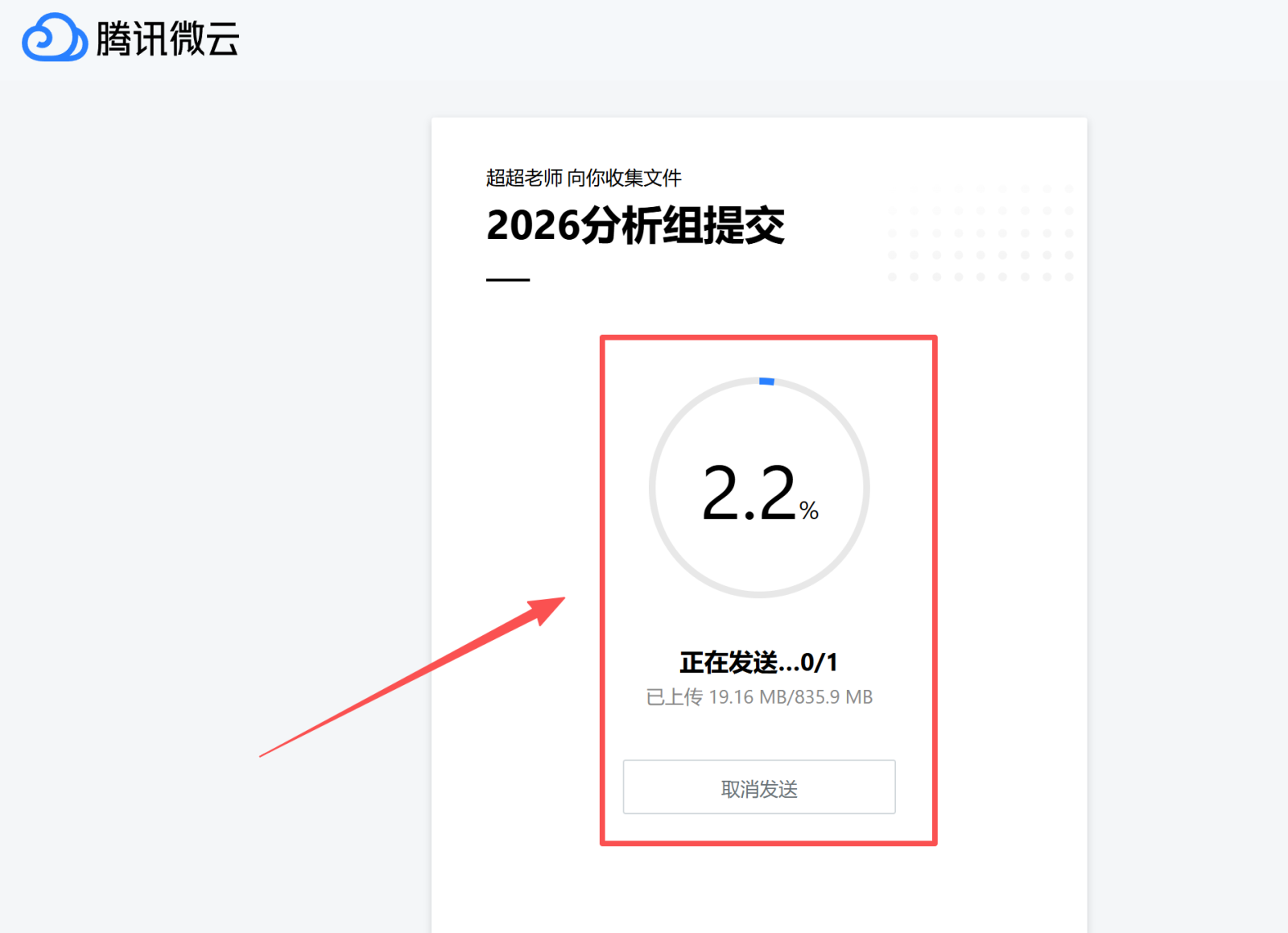 4. 点击发送后,开始加载上传