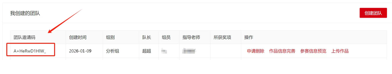 1. 各赛项分别用系统自动生成的唯一「“团队邀请码”」进行作品命名。