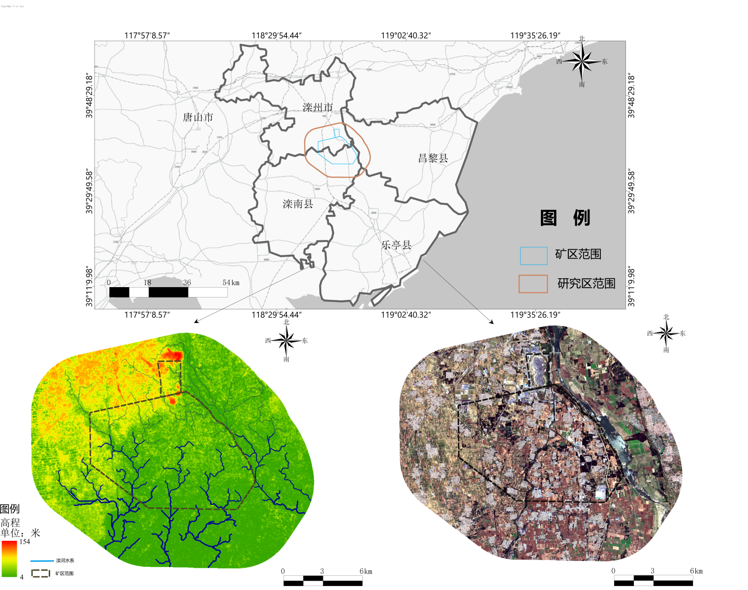 司家营矿区地处华北平原东北部,是冀东地区特大型沉积变质铁矿床,探明矿石资源总储量38亿吨。矿区内以平原为主,降水集中于7-9月,地质条件复杂,第四系覆盖层厚度0-80m,岩性主要为黑云斜长变粒岩、磁(赤)铁石英岩及少量斜长角闪岩。随着城市化进程的加速,长期高强度开采以及矿区道路建设、城镇扩张等人类活动引发地表沉降(最大深度达12m)、植被退化、土壤侵蚀等严峻生态问题。同时矿区地处唐山市地震带,地质条件本弱,人类活动进一步放大了生态风险的复杂性与不确定性。在此背景下,剖析“人类活动——自然生态”的耦合机制,建立科学的量化体系实现矿山生态风险精细化解析显得极为迫切。