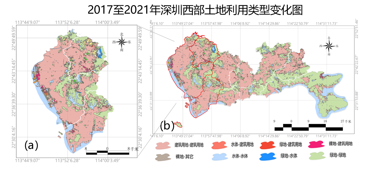 图3 a.2017年深圳市土地利用类型图;b.2021年深圳市土地利用类型图